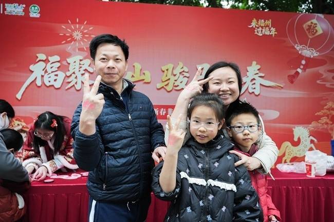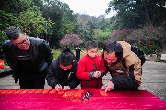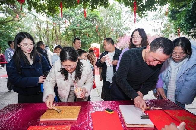 活动现场,非遗与福文化相融共生,欢声笑语不断。在千年摩崖·拓古传福体验区,游客亲手制作摩崖石刻书签,感受鼓山“东南碑林”的千年底蕴;在福聚鼓山·匠心福艺体验区,游客亲手体验绳结、版画等非遗创作的乐趣;在春满鼓山·集福成趣体验区,游客体验鼓山经典“福”字摩崖石刻印章加盖,把鼓山福气带回家;走进鼓山十八景园,游客边赏摩崖石刻边收集福影,抽取福礼;在梅里赏梅祈福点,游客现场领取祈福牌,写下新春心愿,垂挂梅梢,寄托“马上如愿”的美好期许……