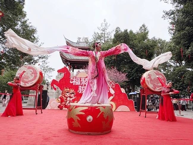 锣鼓喧天迎新春,非遗焕彩耀鼓山。作为新春主题活动的核心体验区,鼓山眺望台广场人气满满,正月初一至初五,中华传统鼓舞、油纸伞舞蹈、三条簪、舞狮、武术、国潮民乐等独具非遗特色的表演每天轮番上演。